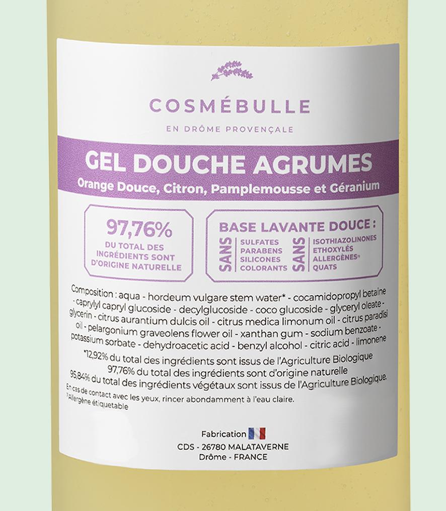 Avec ses ingrédients naturels et non toxiques, ce gel douche bio est parfait pour votre routine beauté clean. Son eau de tige d’orge regorge de vitamine C et d’autres antioxydants qui nourrissent la peau, tandis que ses huiles d’agrumes ont des propriétés antiseptiques et anti-inflammatoires. Sans parfums artificiels, son arôme 100% naturel éveille les sens et provient exclusivement des huiles essentielles d’agrumes.