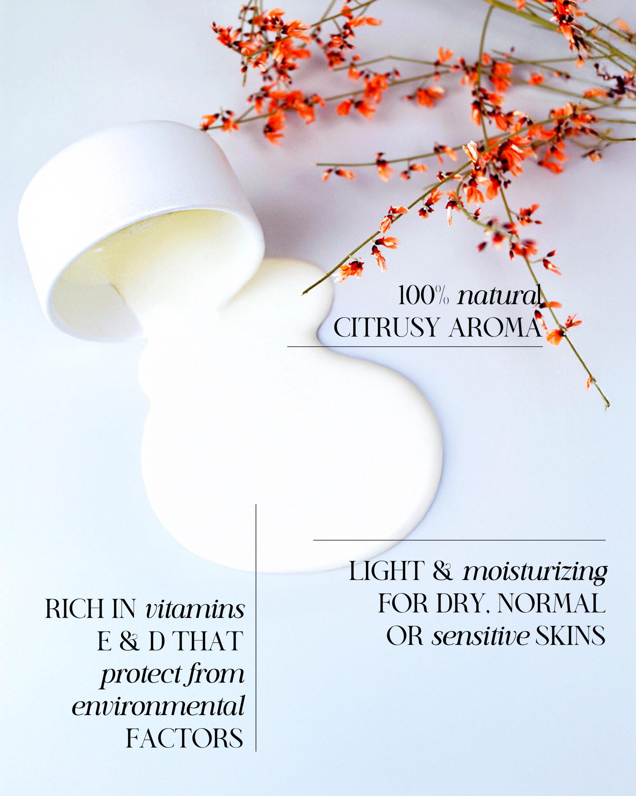 Feuchtigkeitsspendende Körper- und Handlotion mit Zitrusduft – aus 100 % natürlichen, veganen Inhaltsstoffen. Leichte Formel, die die Haut nährt und mit Feuchtigkeit versorgt und sie vor Umwelteinflüssen schützt.